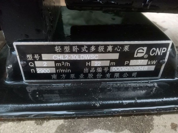 南方泵業(yè)CHL16-20LSWSR 臥式多級離心泵,LSWSR是表示泵的配置是:L內(nèi)螺紋接口,S三相380V電壓,W50hz,S304材質(zhì),R熱水型。橫向進(jìn)水,縱向出水,進(jìn)出口口徑都為2寸(也就是50管)