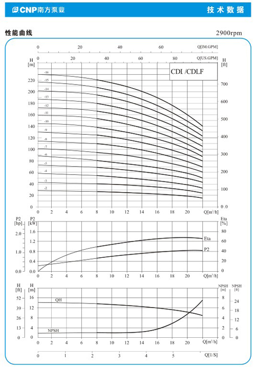 離心泵的主要性能參數(shù)流量、壓頭、軸功率及效率,其間的關(guān)系由實驗測得,測出的一組關(guān)系曲線稱為離心泵的特性曲線或工作性能曲線,此曲線由南方水泵的制造廠提供,并附于泵樣本或說明書中,供使用部門選泵和操作時參考(這些參數(shù)都標(biāo)注在水泵的銘牌上,方便用戶選用)。