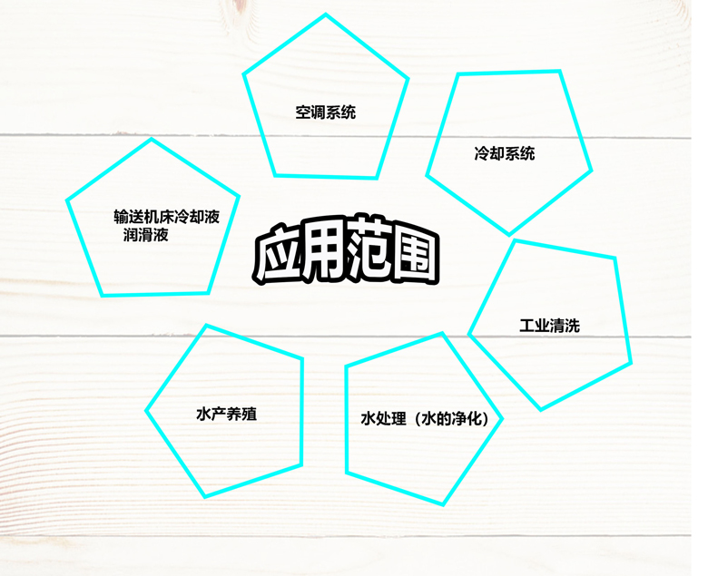 空調(diào)系統(tǒng)、冷卻系統(tǒng)、工業(yè)清洗、水處理(水的凈化)、水產(chǎn)養(yǎng)殖、施肥/計量系統(tǒng)、環(huán)境應(yīng)用、供水和增壓